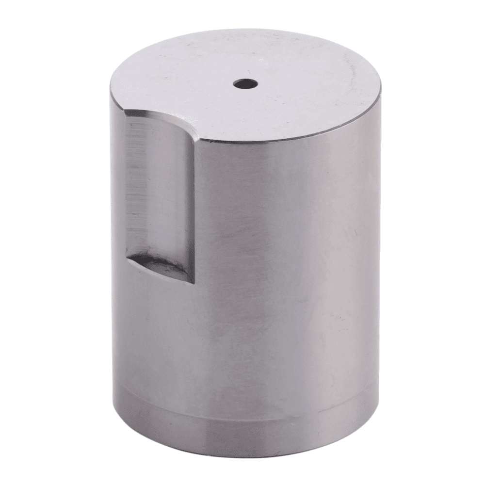 The SCD_ key located headless die button is mecanically clamped and oriented by a washer M8 d6. The tapered relief / recesses allows the off-cut to be evacuated during cutting. Key located die button are mounted in a tool to cut, bend or form sheet